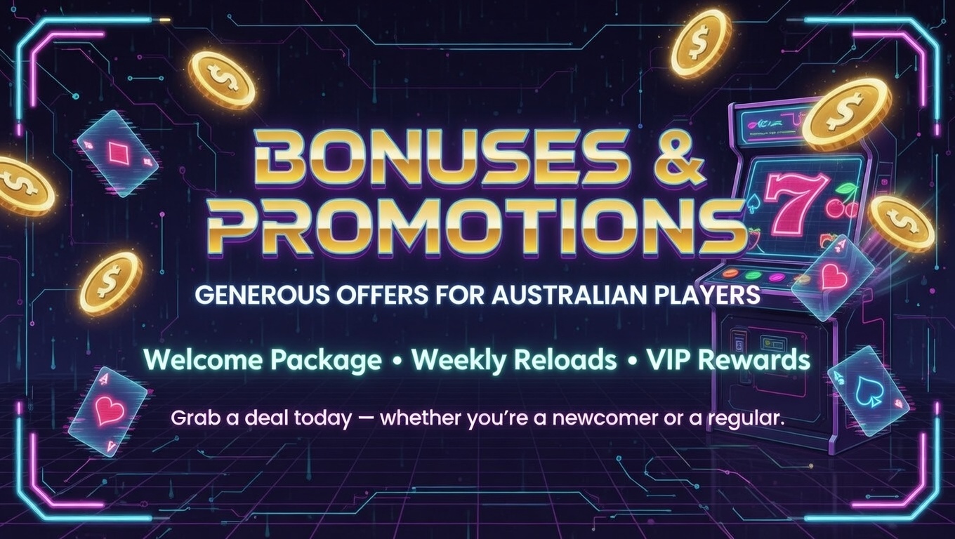 | Bonuses | Welcome Bonus, special pokies bonuses, weekly promos, first-deposit exclusives |